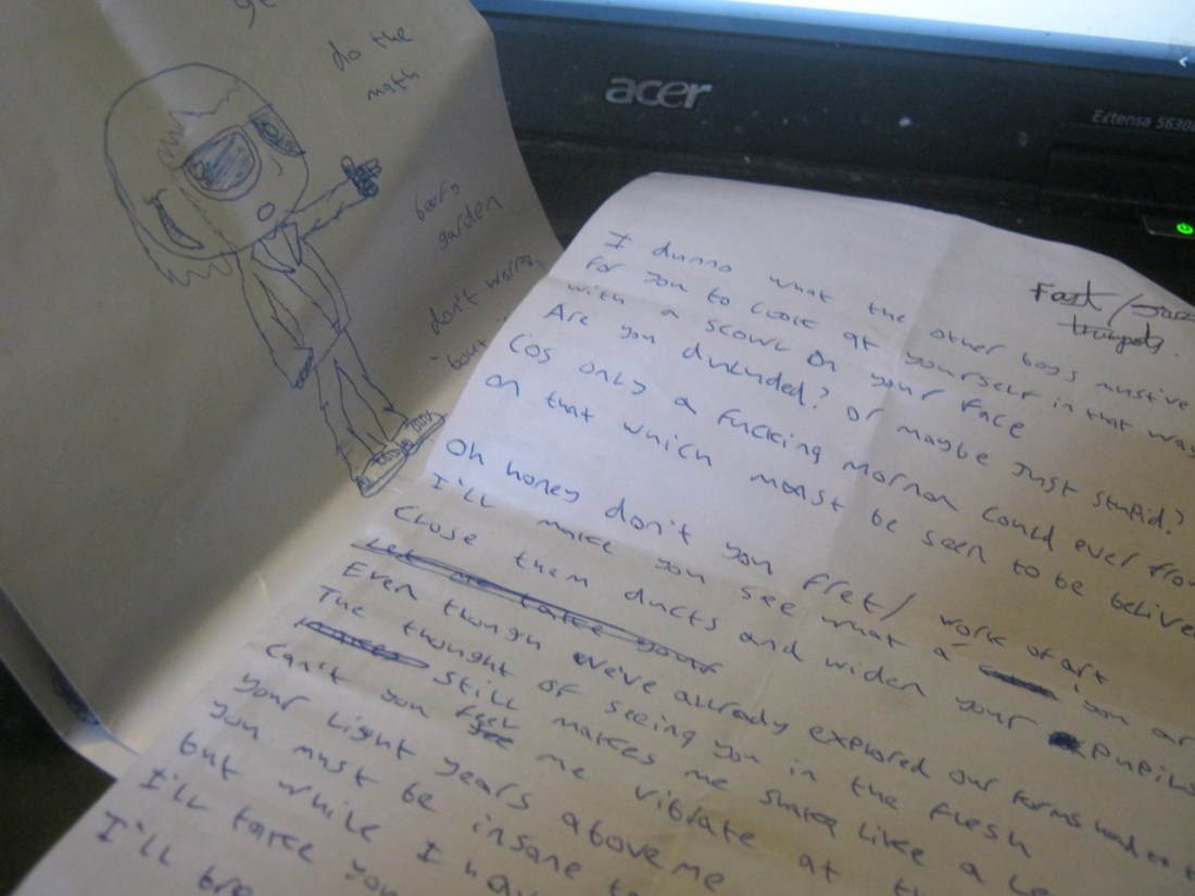 I was clearing up my roomy-room on this fine day and I found loads of Mike Joyce DJ set leaflets all with little doodles and a poem addressed to a past romance, I love finding little things like this.