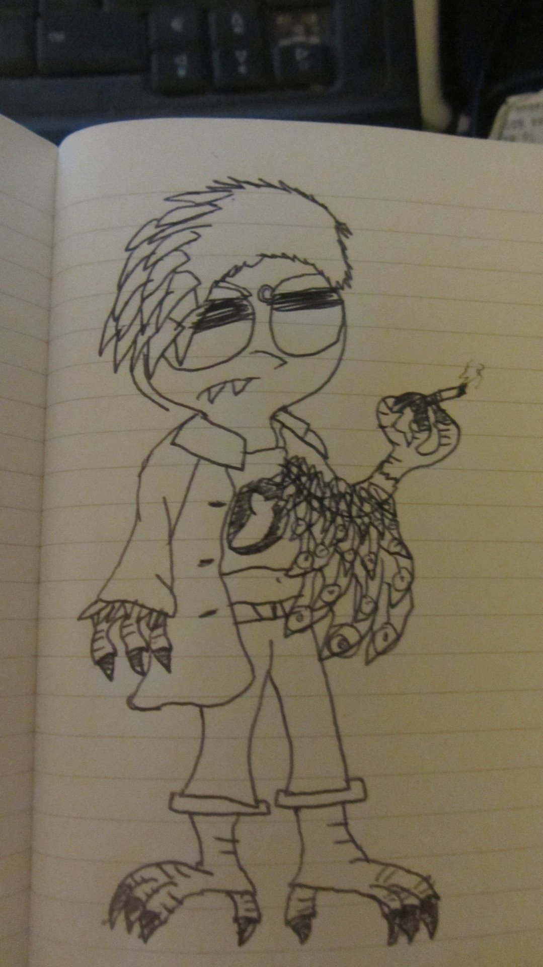 Baxter loitering #toerag #drawing #doodle #scribbles #sketch #sketchbook #thatsgottahurtthebackofhishead #imeandang #shades #imnotsurewhatthemshoesare #sleevlessjacket